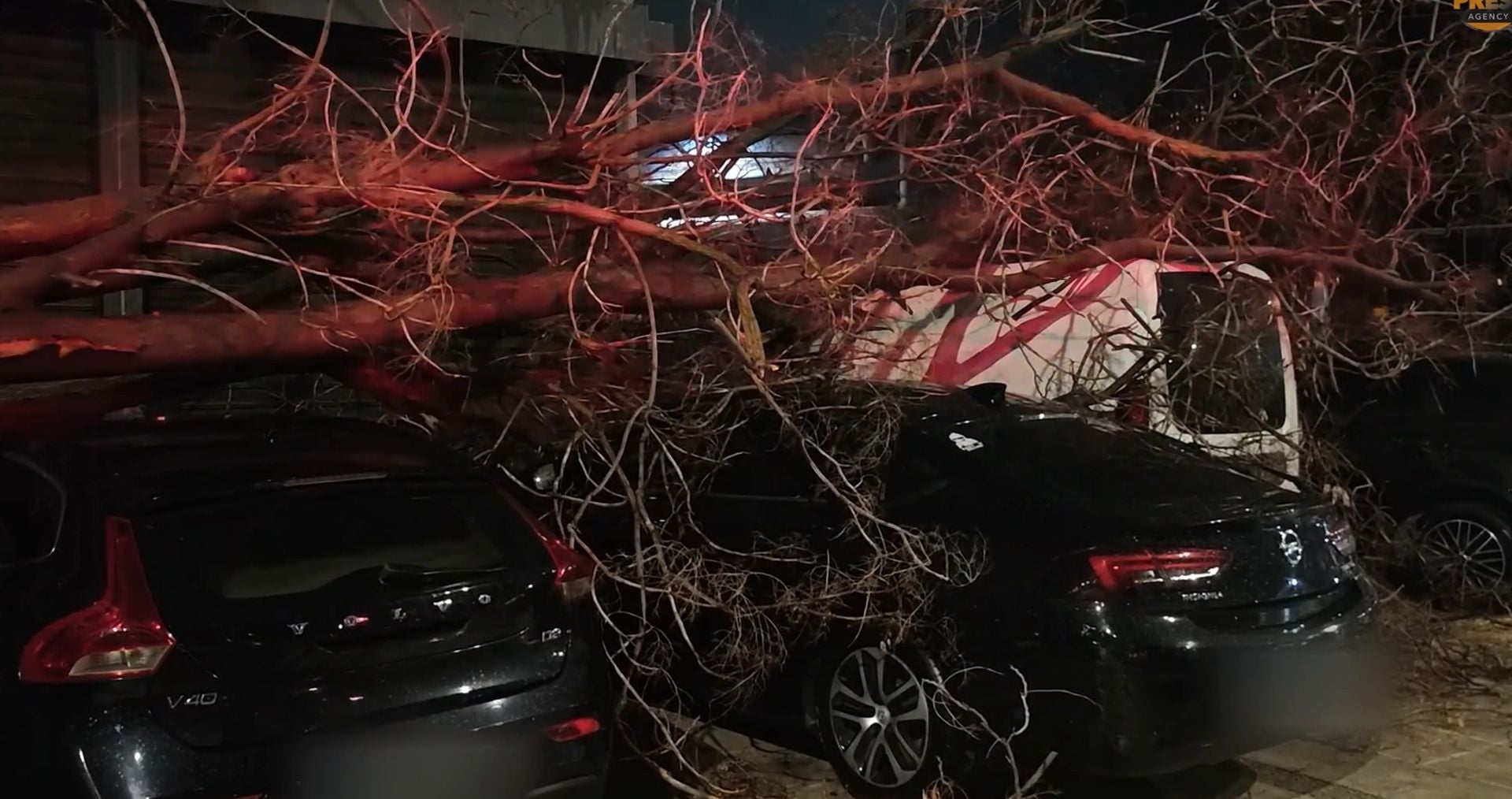 Μεγάλο δέντρο έπεσε στην οδό Πειραιώς και μάλιστα πάνω σε τέσσερα οχήματα λόγω της κακοκαιρίας.