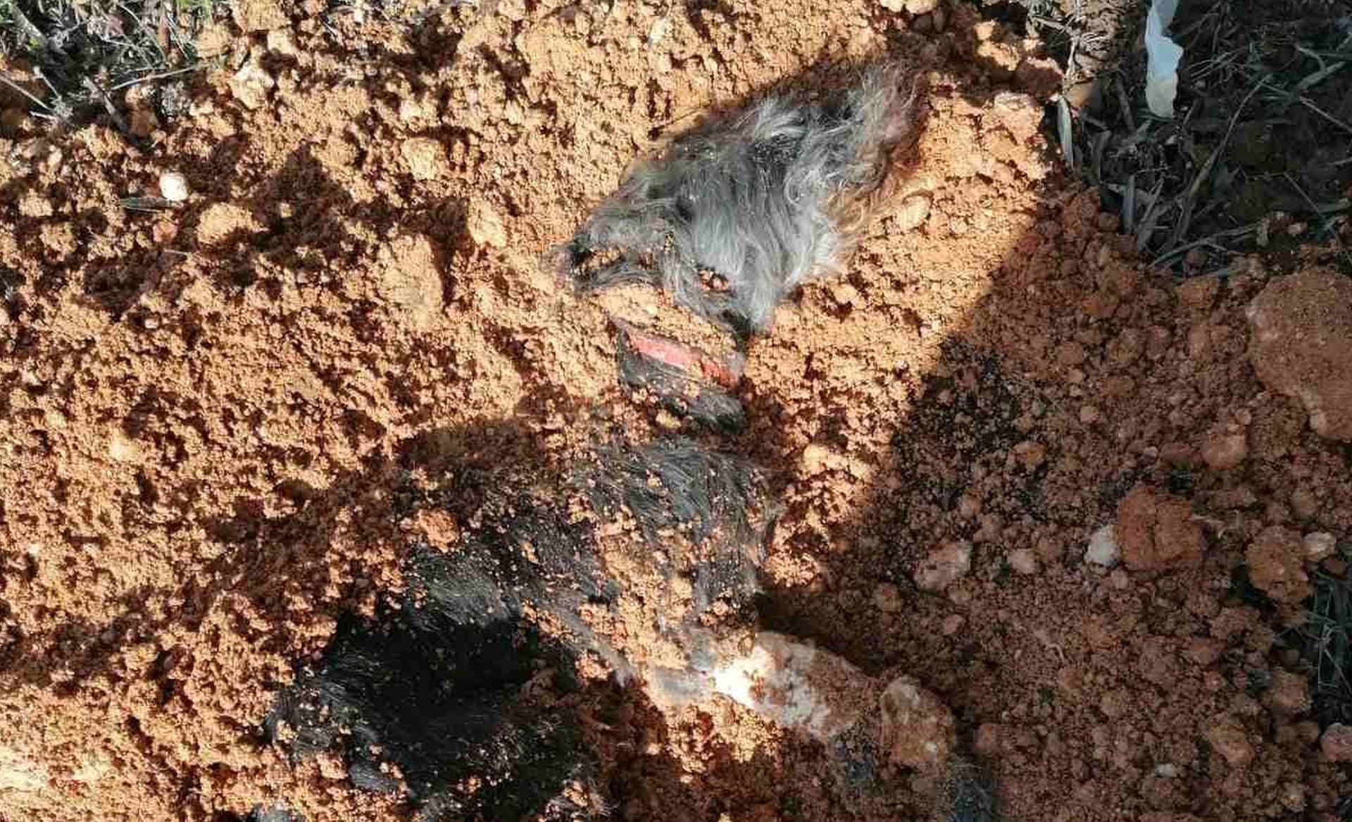 Σε ανάρτηση στον επίσημο λογαριασμό της, η ΕΛΑΣ δημοσίευσε δύο φρικιαστικές φωτογραφίες από το θαμμένο ζώο.