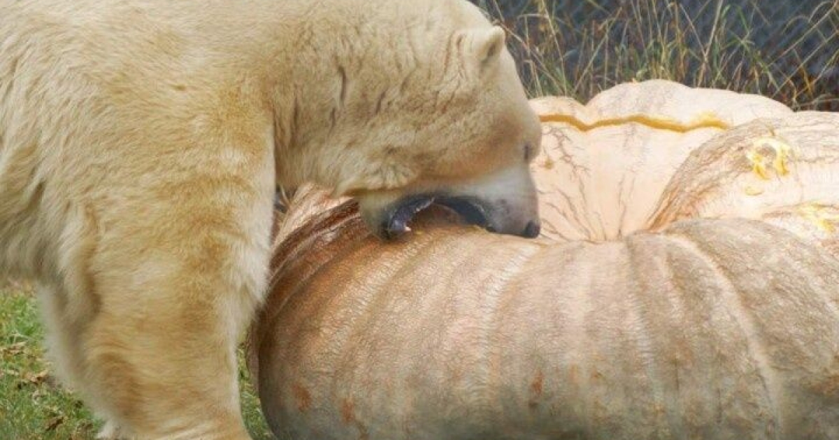 Ο Χένρι, μια πολική αρκούδα, ήρθε αντιμέτωπος με μια τεράστια κολοκύθα 635 κιλών