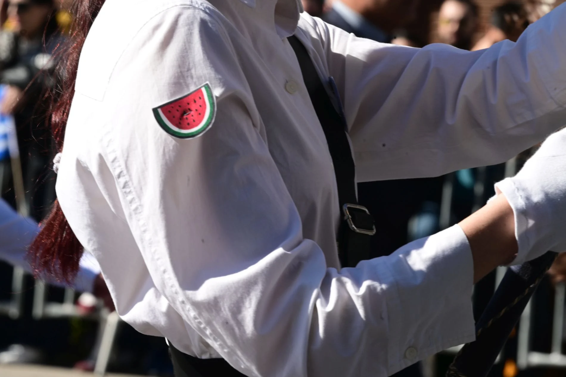 Στη μαθητική παρέλαση της Αθήνας ανήμερα της 28ης Οκτωβρίου πολλή δημοσιότητα πήρε η μαθήτρια σημαιοφόρος που εμφανίστηκε με ένα «καρπούζι» κολλημένο στο μανίκι της, ένα σύμβολο που έχει συνδεθεί με την Παλαιστίνη και την αλληλεγγύη στον λαό της Γάζας.