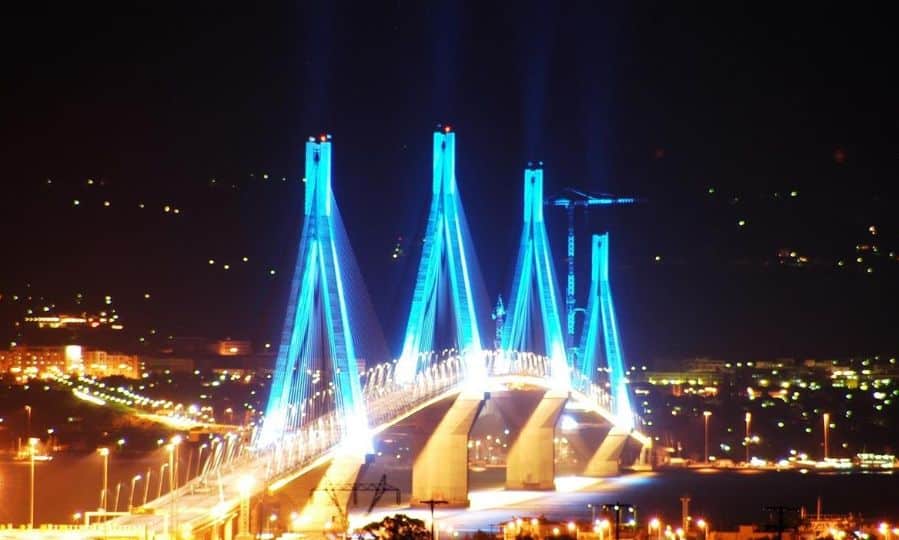 Στα γαλανόλευκα φωταγωγήθηκε η γέφυρα Ρίου – Αντιρρίου για την κορύφωση των επετειακών εκδηλώσεων. Με τη φωταγώγηση αποτίνεται φόρος τιμής στη μνήμη και την ιστορική βαρύτητα της επετείου.
