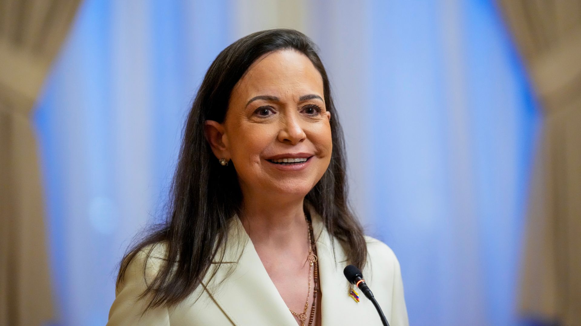 Η Ματσάδο βραβεύθηκε για την αντίσταση της κατά της δικτατορίας στη Βενεζουέλα και, όταν της απονεμήθηκε το βραβείο, το αφιέρωσε, μεταξύ άλλων, στον Αμερικανό πρόεδρο, Ντόναλντ Τραμπ, ο οποίος επανειλημμένα δήλωσε ότι το άξιζε. Νωρίτερα φέτος, του το πρόσφερε, με την Νορβηγική Επιτροπή Νόμπελ να απαντά ότι το βραβείο παραμένει συνδεδεμένο με το άτομο ή τον οργανισμό που αναγνωρίζεται ως νικητής.