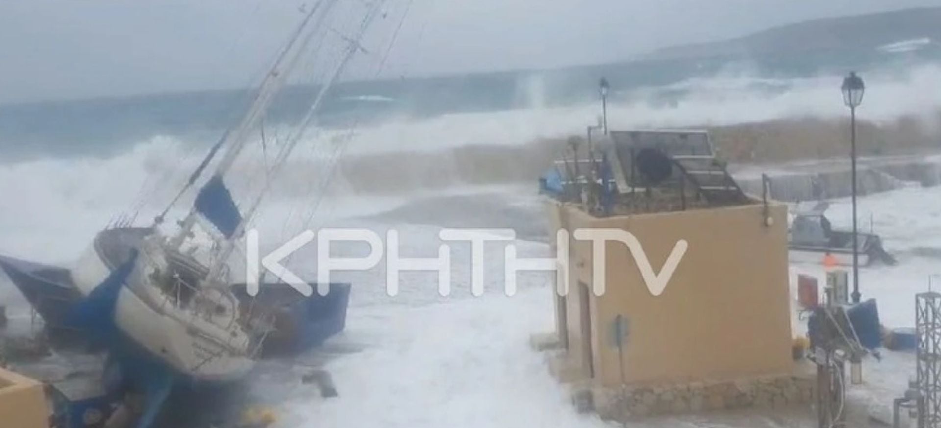 Ο αέρας σήκωσε ιστιοπλοϊκό μήκους περίπου 15 μέτρων, προκαλώντας σοβαρές ζημιές. Ένα αυτοκίνητο και δύο βάρκες βυθίστηκαν, ενώ τα κύματα πέρασαν και πάνω από τον λιμενοβραχίονα.