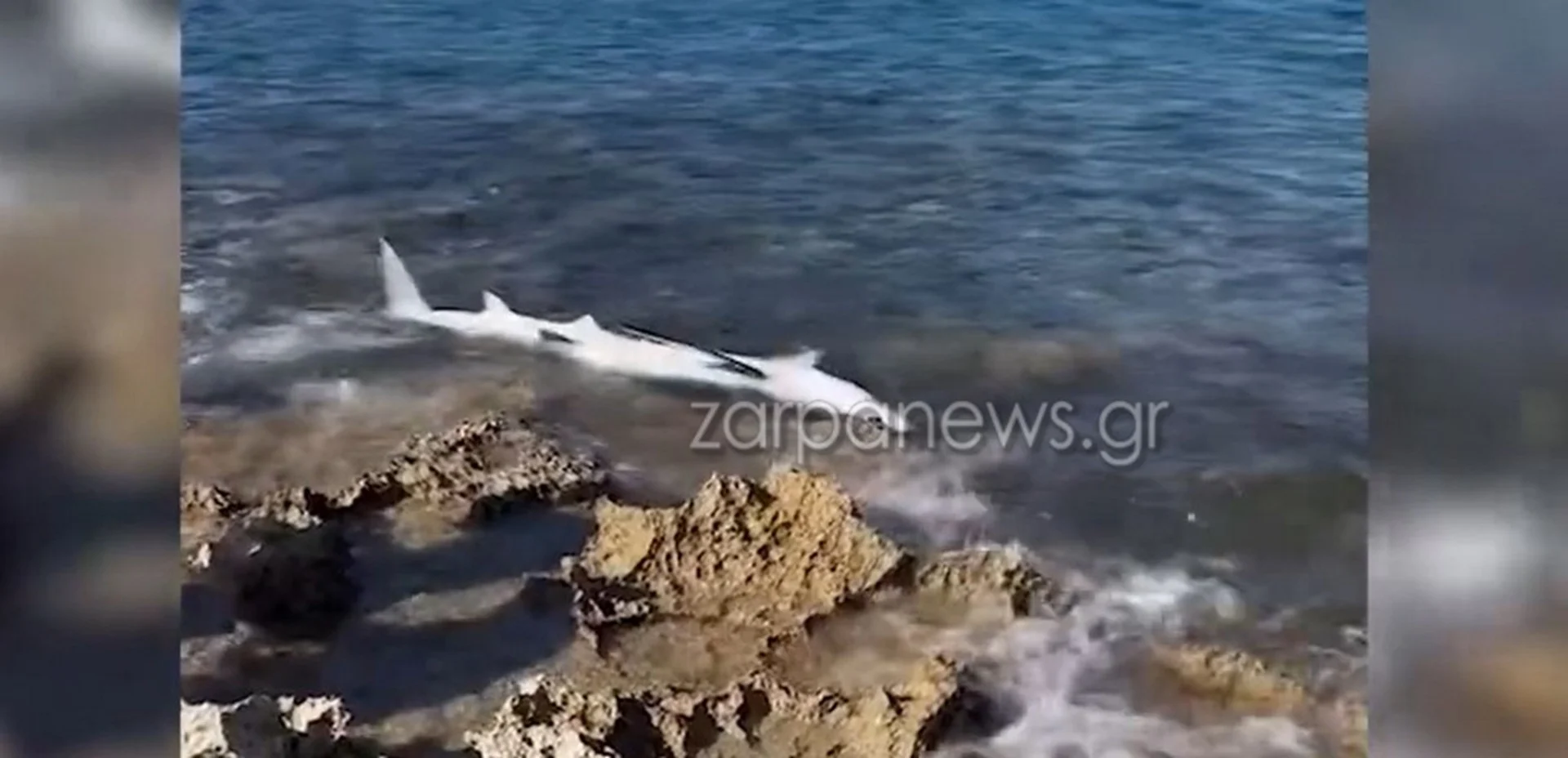 Σημειώθηκε το απόγευμα της Κυριακής 9 Νοεμβρίου στην παραλία του Σταυρού στα Χανιά, όταν ένα καρχαριοειδές ξεβράστηκε στα βράχια, προκαλώντας έκπληξη και αναστάτωση σε όσους βρίσκονταν στο σημείο.