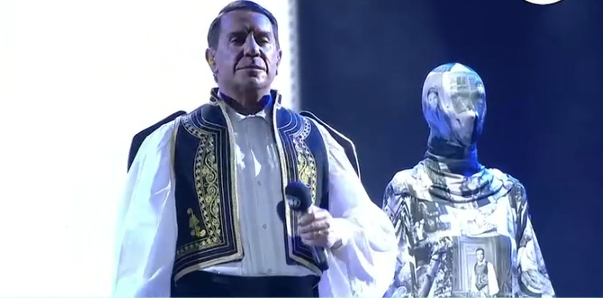 Ο δημοφιλής καλλιτέχνης έχει επανέλθει δριμύτερος μετά την περιπέτεια με την υγεία του πριν λίγους μήνες και αποφάσισε να κάνει ανατρεπτική εμφάνιση στην σκηνή της διοργάνωσης ντυμένος με ρούχα που παρέπεμπαν σε παραδοσιακή στολή ενώ τραγουδούσε την «Θαλασσογραφία» σε μια πιο ηλεκτρονική εκδοχή.