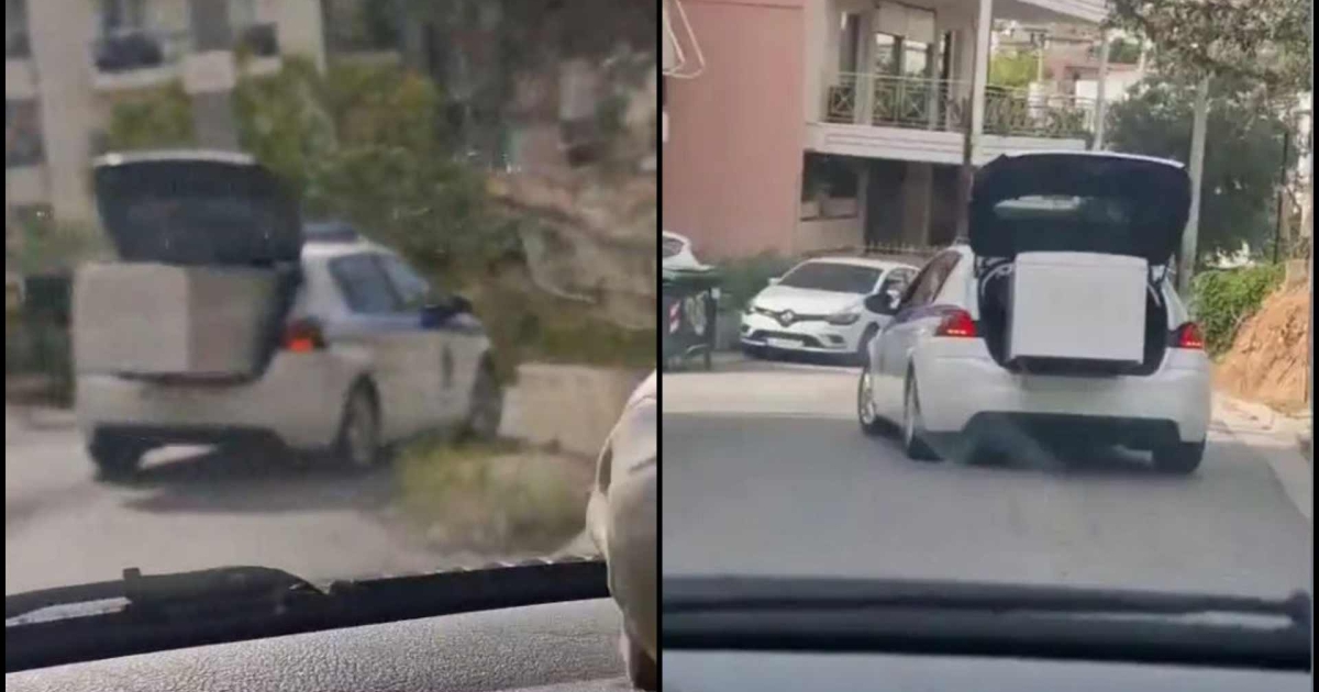 Τον γύρο του διαδικτύου κάνει ένα viral βίντεο σε δρόμο στο Καματερό, όπου ένα περιπολικό μεταφέρει στο πορτμπαγκάζ… ψυγείο. Το βίντεο ανέβηκε στο TikTok και έχει προκαλέσει πολλές αντιδράσεις.