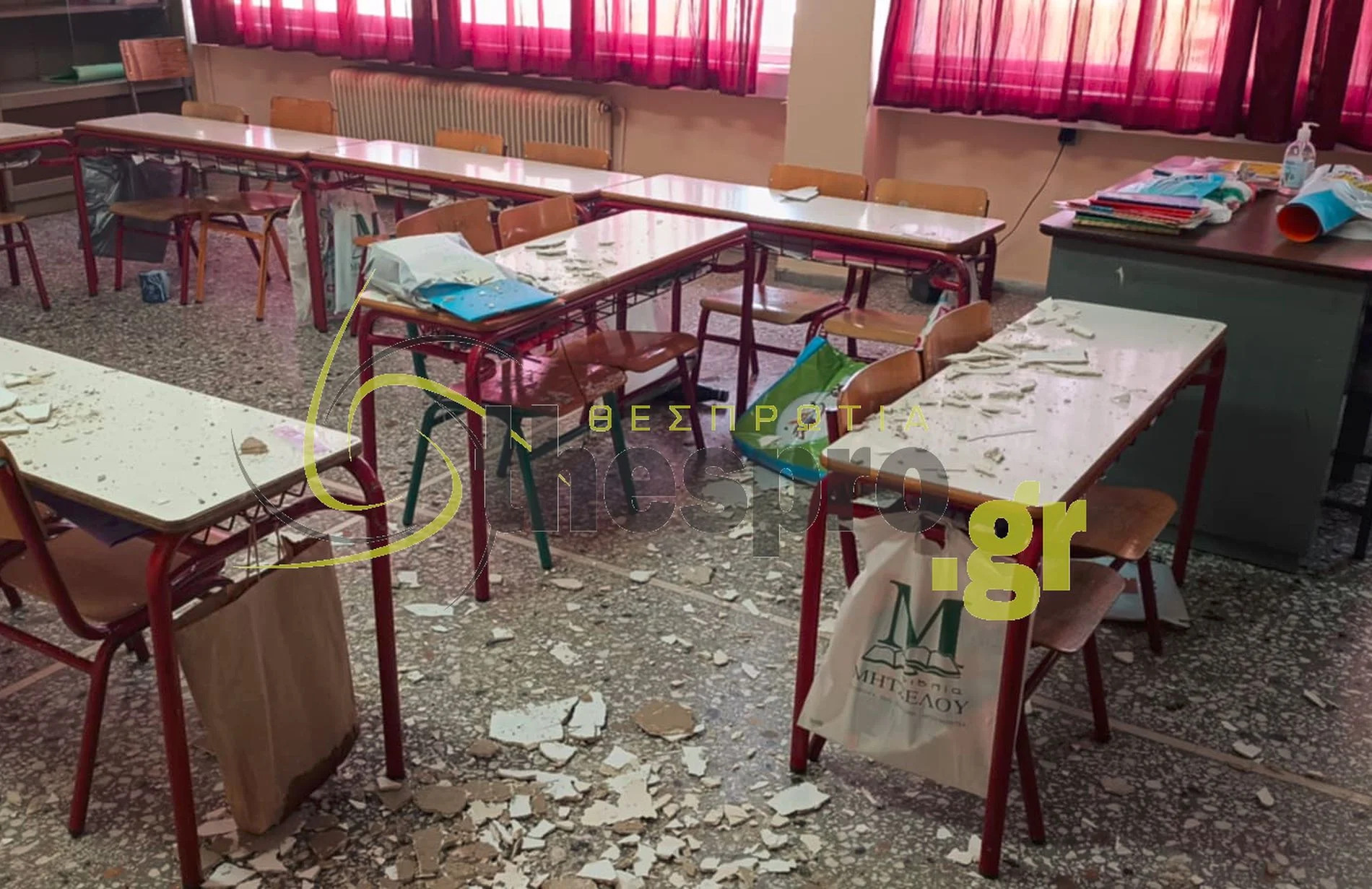Λίγο πριν την έναρξη του μαθήματος την Παρασκευή (7/11) το πρωί, οι σοβάδες άρχισαν να πέφτουν από το ταβάνι, αλλά ευτυχώς μαθητές και δάσκαλοι δεν είχαν μπει ακόμα στην αίθουσα.