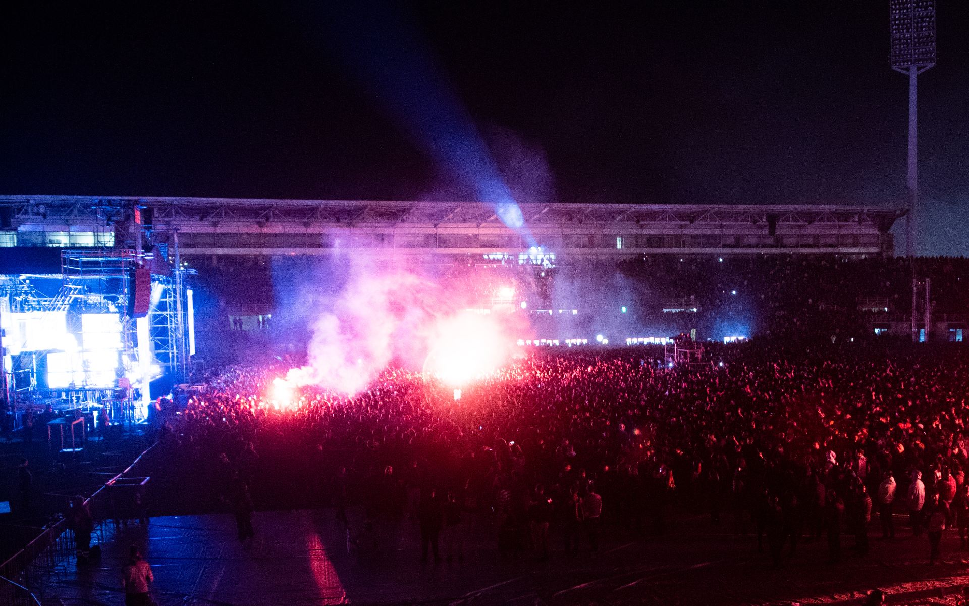 Χιλιάδες άνθρωποι κάθε ηλικίας, πλάι-πλάι, με τα κινητά ψηλά και τα βλέμματα καρφωμένα στην σκηνή, ραπάρουν ασταμάτητα τους στίχους του αγαπημένου τους καλλιτέχνη.