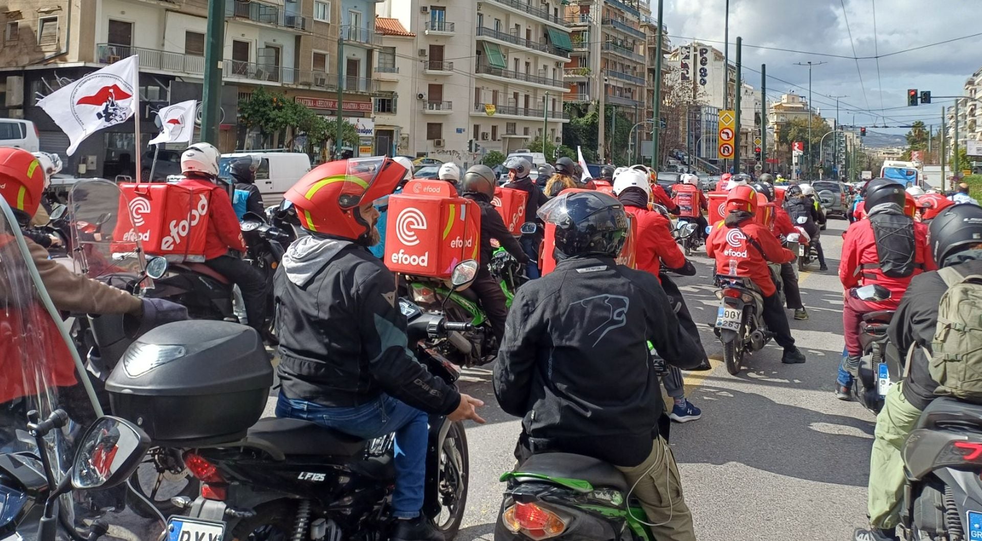 Σε συμβολική ημέρα με αυξημένη ζήτηση για διανομή φαγητού, οι εργαζόμενοι επέλεξαν να κάνουν αισθητή την παρουσία τους στους δρόμους της πρωτεύουσας. Η μοτοπορεία οργανώθηκε με αφετηρία το κεντρικό σημείο των λεωφόρων Κηφισίας και Αλεξάνδρας και κατευθύνθηκε προς την έδρα της εταιρείας στο Νέο Ηράκλειο.