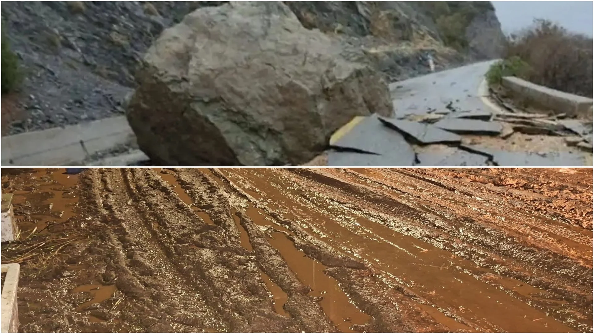 Στη νότια Λέσβο, ένας βράχος 40 τόνων αποκολλήθηκε στον δρόμο προς Μελίντα και έπεσε στο οδόστρωμα δημιουργώντας κρατήρα 1.5 μέτρου, προκαλώντας καταστροφές και σταματώντας την κυκλοφορία. Ευτυχώς, δεν υπήρξαν τραυματισμοί. Ωστόσο, οι αρμόδιες αρχές είναι σε συναγερμό καθώς υπάρχει κίνδυνος για νέες κατολισθήσεις λόγω των βροχών που συνεχίζονται.